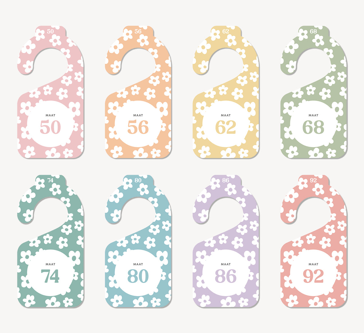De set bestaat uit 8 maathangers. De set loopt van maat 50 t/m maat 92.
