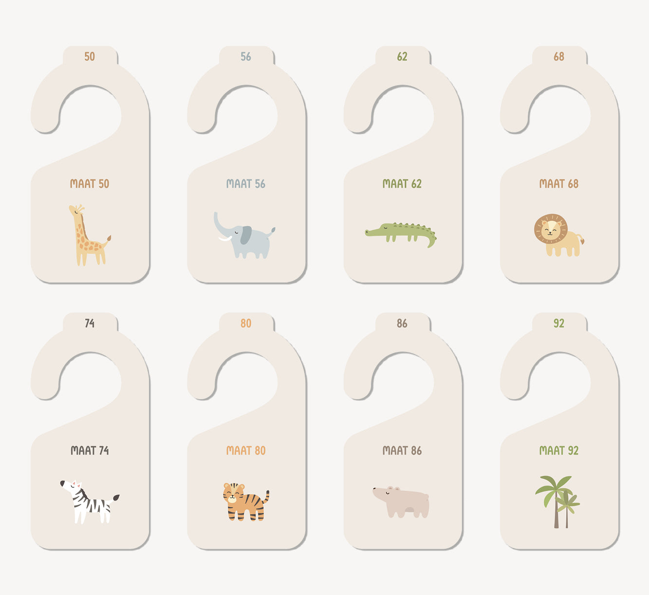 De set bestaat uit 8 maathangers. De set loopt van maat 50 t/m maat 92.