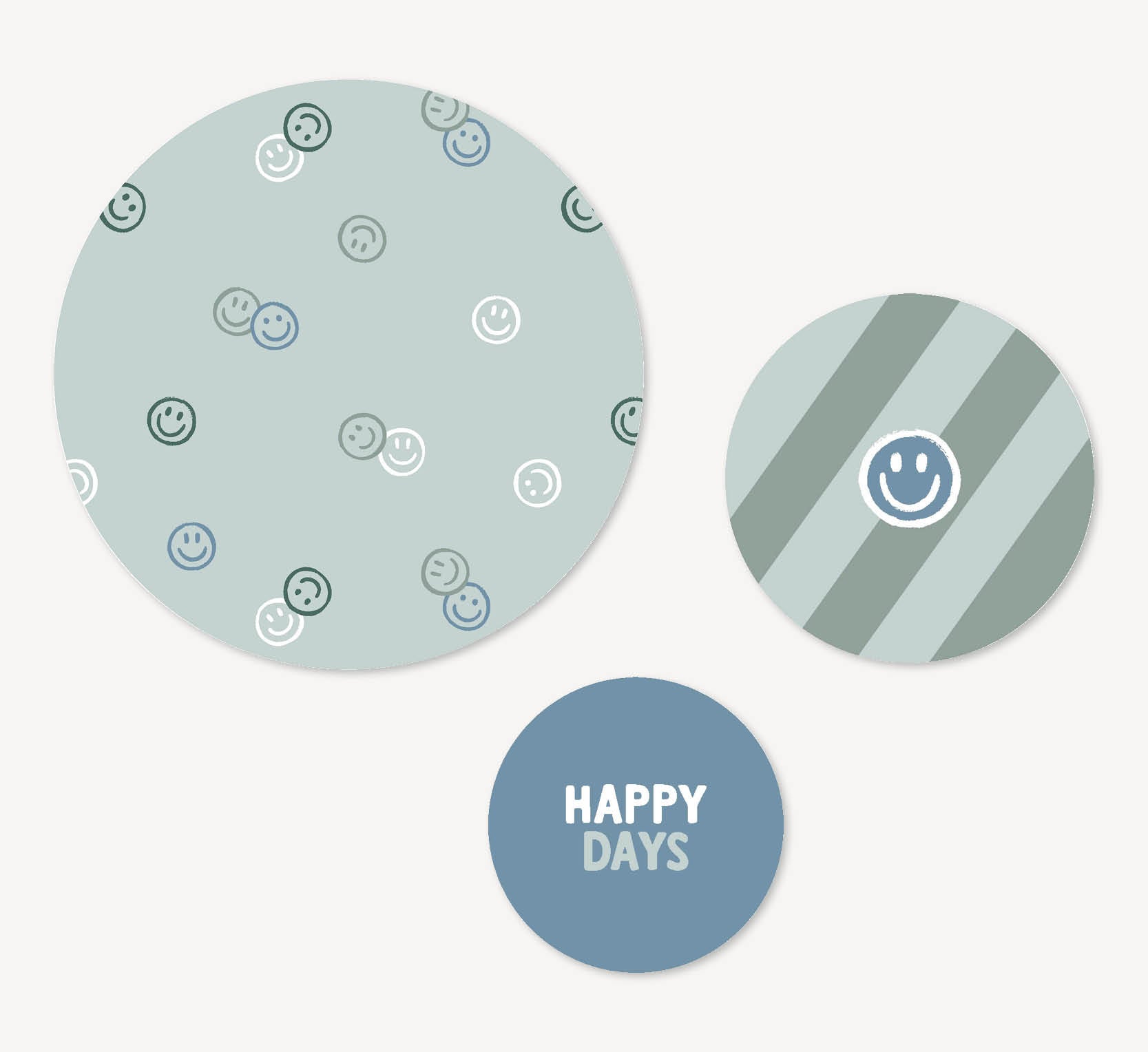 De afmetingen van de muurcirkels smiley zijn: 40 cm, 25 cm en 20 cm.